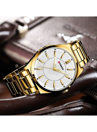 CURREN 8407 ساعات رجالية ذات علامة تجارية فاخرة كوارتز كلاسيكية سوداء للأعمال ساعة يد بسوار من الفولاذ المقاوم للصدأ بسيطة - ذهبي/أبيض