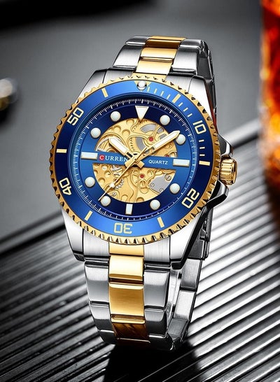 ساعة Curren 8412 الفاخرة بمينا هيكل عظمي وسلسلة باللون الأزرق - فضي/ذهبي/أزرق