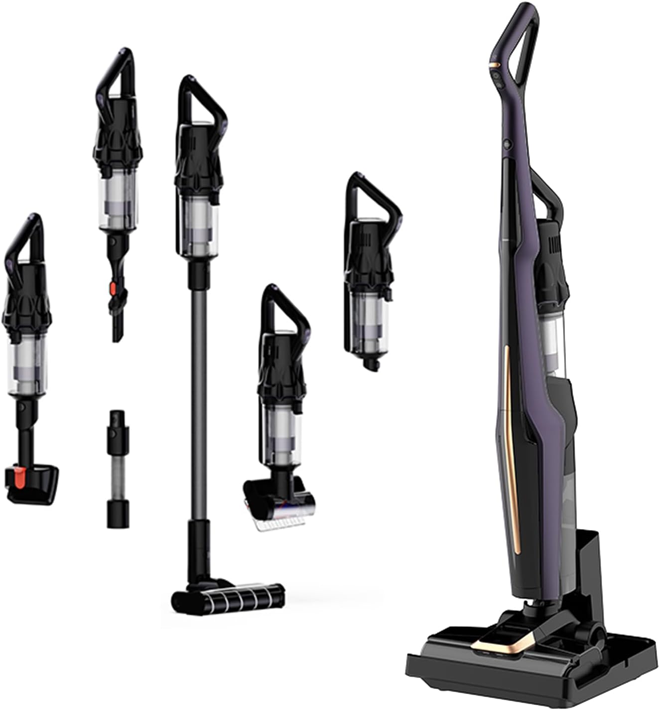 ✅ستة ملحقات للفرشاة: 6 ملحقات لتنظيف المنزل بالكامل، فرشاة أرضية كهربائية، فرشاة إزالة العث الكهربائية، أداة شقوق 2 في 1، فرشاة تنظيف هاري وفرشاة أسطوانية.