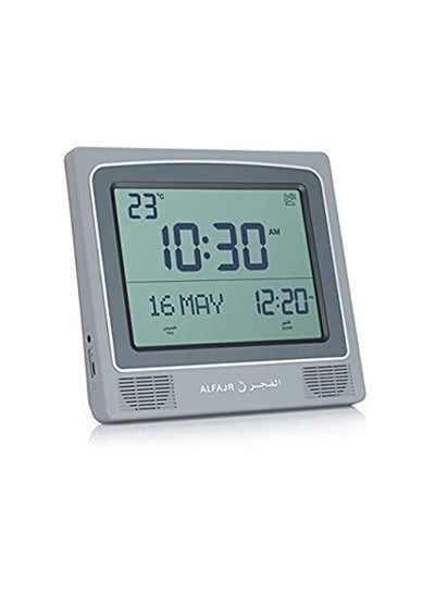ساعة حائط رقمية وساعة أذان للصلاة مع شاشة LCD كبيرة باللون الرمادي مقاس 22 × 20 سم