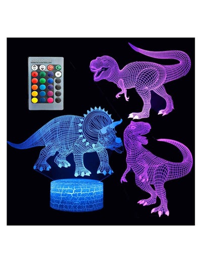 ديناصور 3D ليلة ضوء اللمس الجدول مصباح مكتبي ثلاثة نمط 7 ألوان أضواء الوهم البصري مع الاكريليك شقة وقاعدة ABS وكابل USB