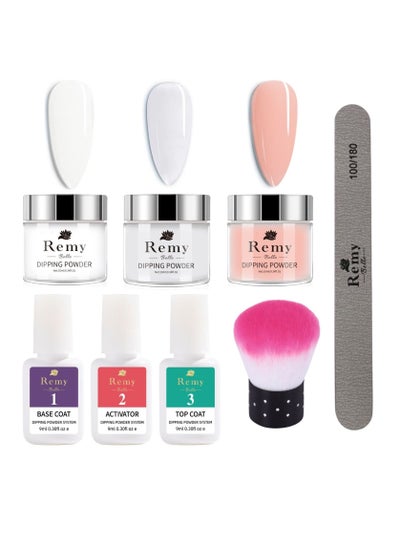 مجموعة بودرة غمس الأظافر للمبتدئين، 3 ألوان، نظام بودرة غمس، مجموعة سائلة أساسية مع طبقة أساسية وطبقة علوية منشط لصالون مانيكير، اصنعها بنفسك في المنزل