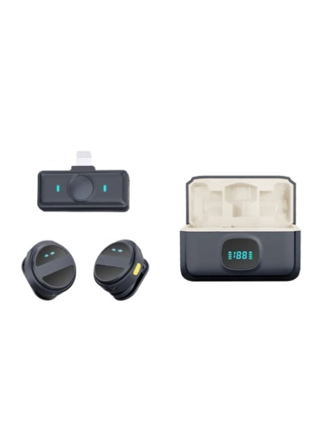 The microphones charge within the included storage case, which also displays the battery level digitally, and the system offers up to 20 hours of battery life with Lightning connector direct charging.