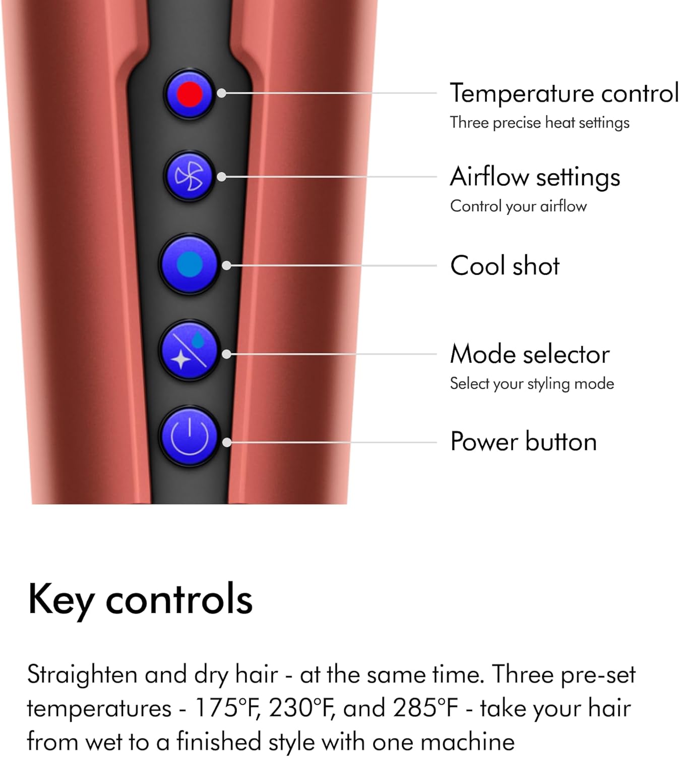 مكواة فرد الشعر دايسون ايرستريت HT01، لون برونزي فراولة/وردي خدود، تصفيف مبسط من الرطب إلى الجاف، أداة للعناية بالشعر لجميع أنواع الشعر