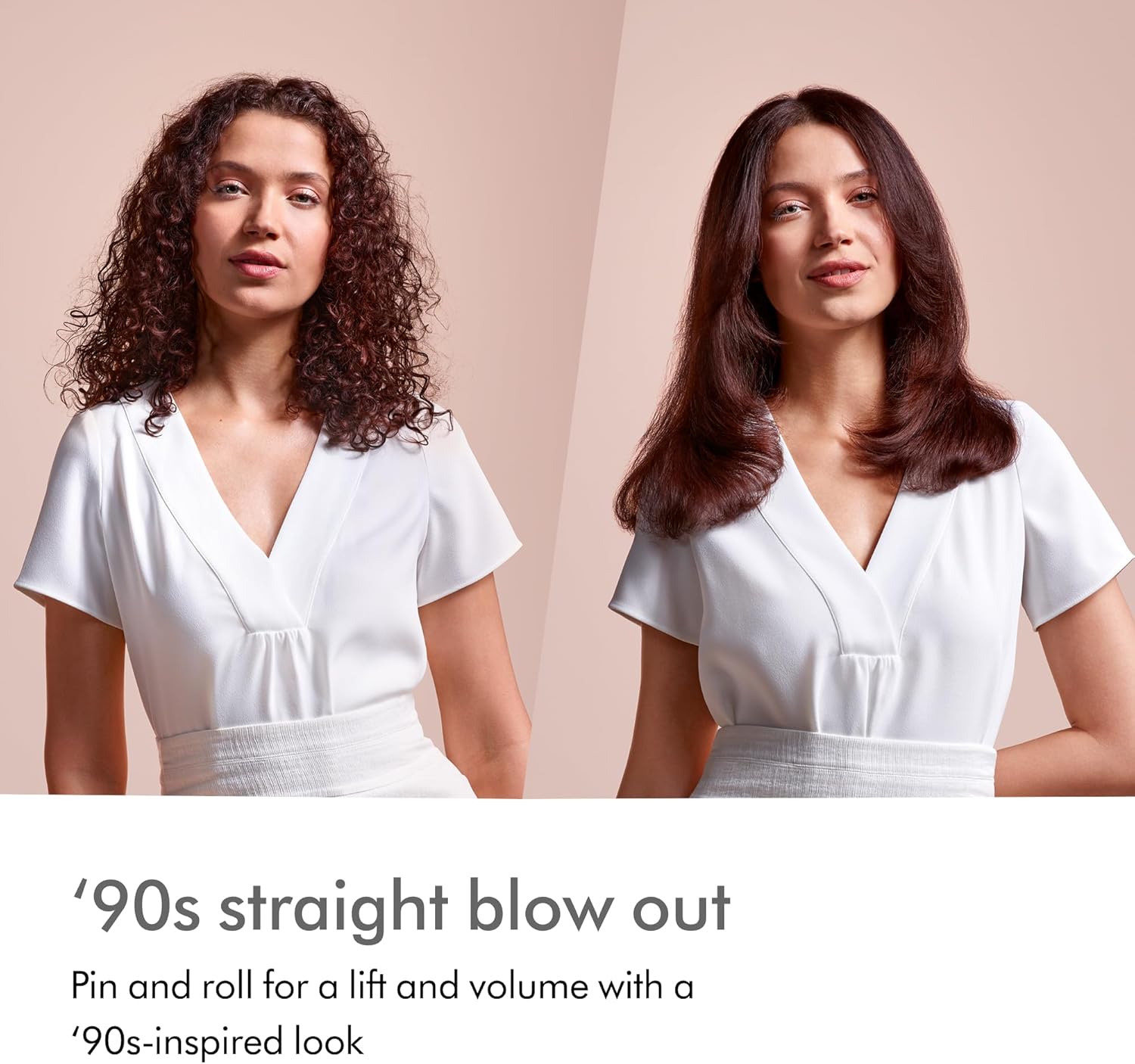 يتم توجيه تدفق الهواء إلى الأسفل بزاوية 45 درجة لخلق التوتر اللازم لتسوية الشعر للحصول على نمط نهاية ناعم - مع أقل قدر من الضرر والتكسر.