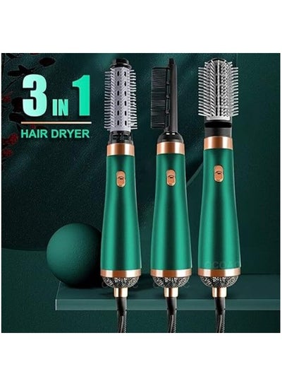 مجفف شعر كهربائي، مشط، فرشاة دوارة بالهواء الساخن، 3 في 1، مجفف شعر، فرشاة منفاخ شعر، مكواة تجعيد تلقائية (أخضر)