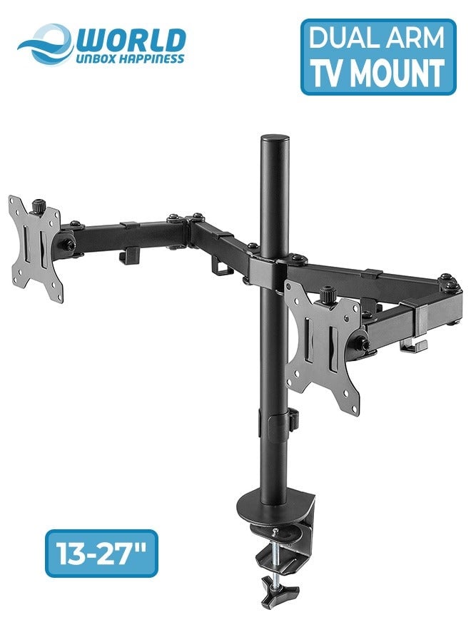 Eworld Dual Monitor Desk Mount with Telescoping Arms – Fits 2 Screens 13-27 Inch – Heavy-Duty Clamp Base with Swivel and VESA Support