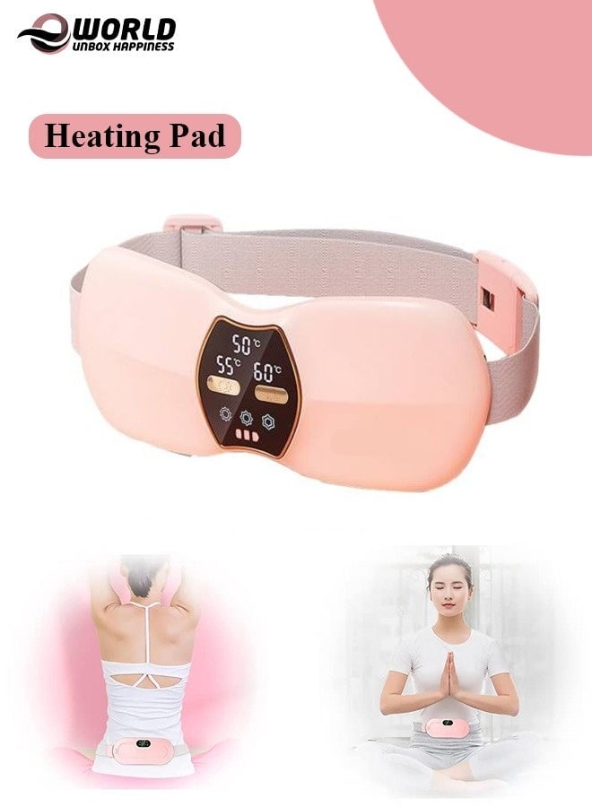 Eworld Lifestyle Dual-Therapy Cordless Heat & Vibration Massage Pad, 4 Heat Levels, LED Digital Display, 2500mAh Battery, Auto Shut-Off, Period Pain Relief for Women – Pink