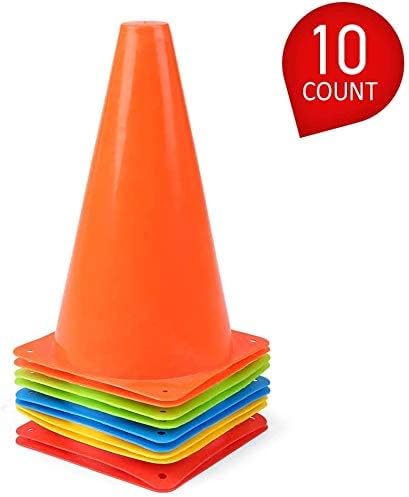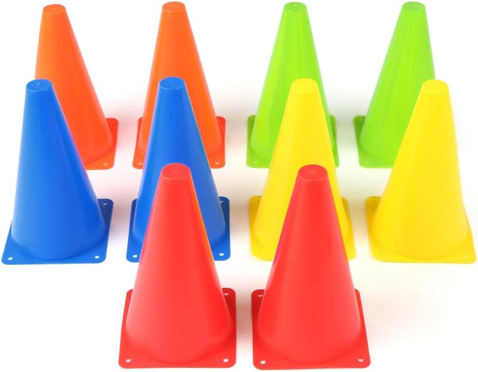 مخاريط مرور بلاستيكية للأطفال من فانري، 5 ألوان - عبوة من 10 قطع (9 بوصات)