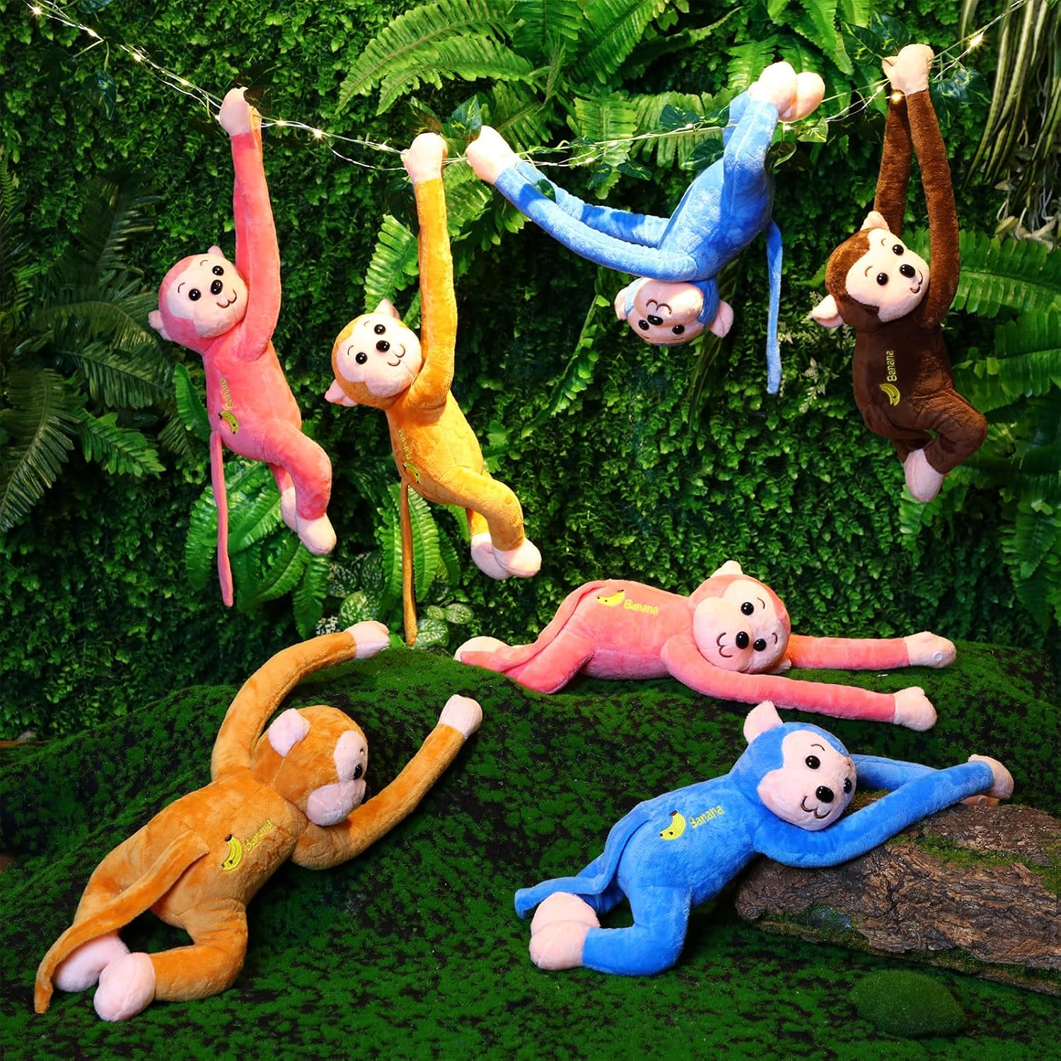 لعبة قرد محشوة على شكل قرد معلق من Gemscream، 8 قطع، مقاس 17.8 بوصة، مع قطعتين من الكروم الصناعي المعلق، قطعتين من سلسلة مصابيح تعمل بالبطارية، 20 مصباح LED، هدايا للأولاد والبنات، متعددة الألوان