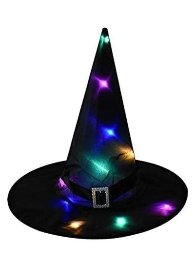 قبعة ساحرة متوهجة للهالوين مع ضوء LED للأزياء والديكور مقاس 35.5 × 38 سم