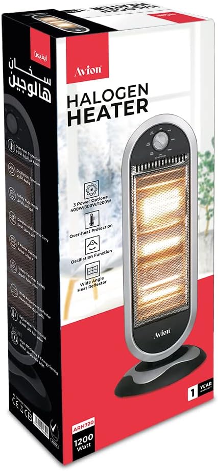 مدفأة هالوجين، 1200 واط، وظيفة التذبذب، عاكس حرارة بزاوية واسعة، 3 مستويات حرارة