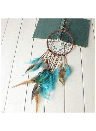 صائد الأحلام المصنوع يدويًا من الريش الأزرق، شبكة دائرية على الحائط، حلي معلقة، ديكور منزلي حرفي، هدية مباركة لحفلات الزفاف