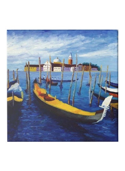 لوحة جدارية من القماش الكتاني تحمل عنوان المرفأ مع إطار أزرق/أصفر/أبيض 50x50سنتيمتر