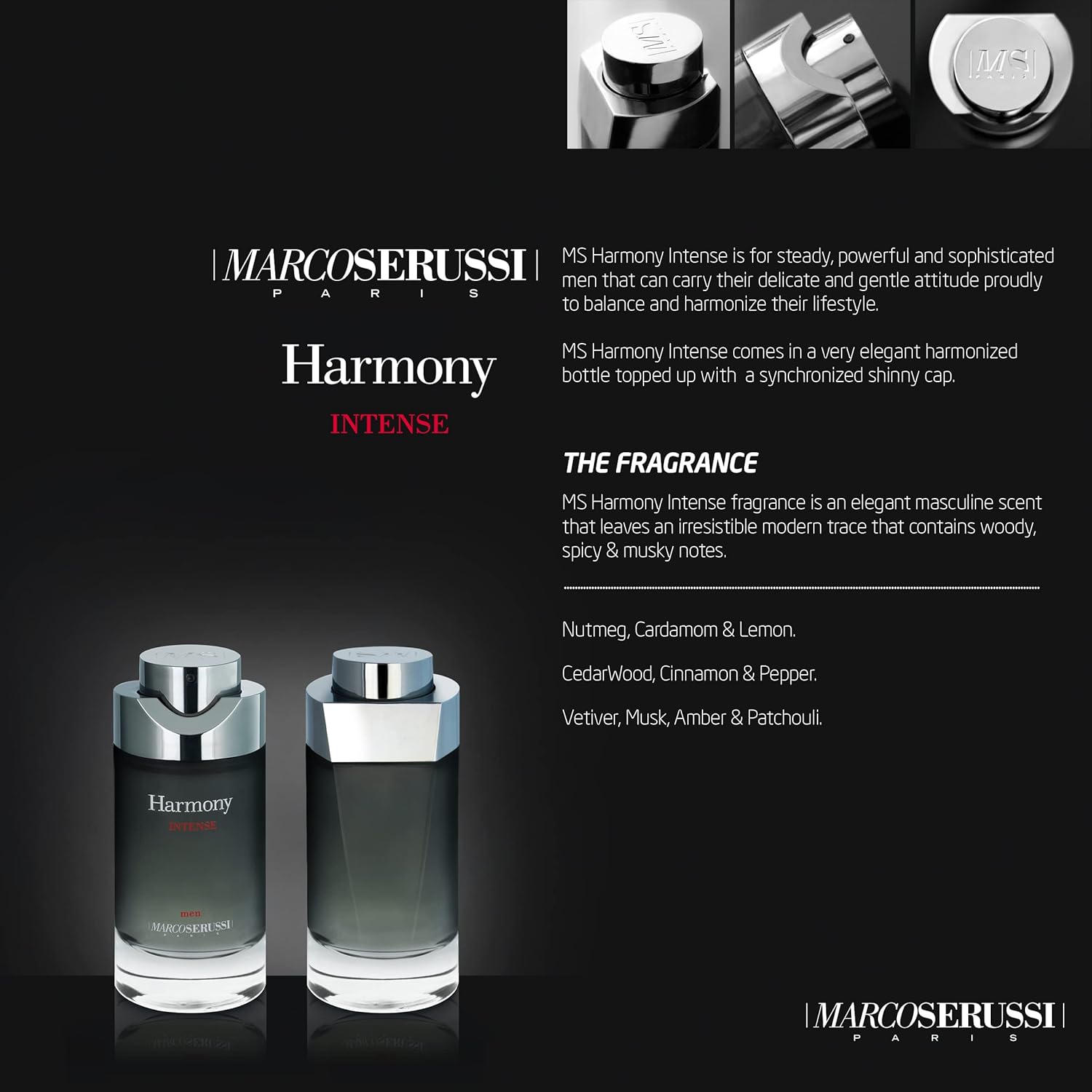 MS Harmony Intense fragrance is an elegant masculine scent that leaves an irresistible modern trace that contains woody, spicy and musky notes.