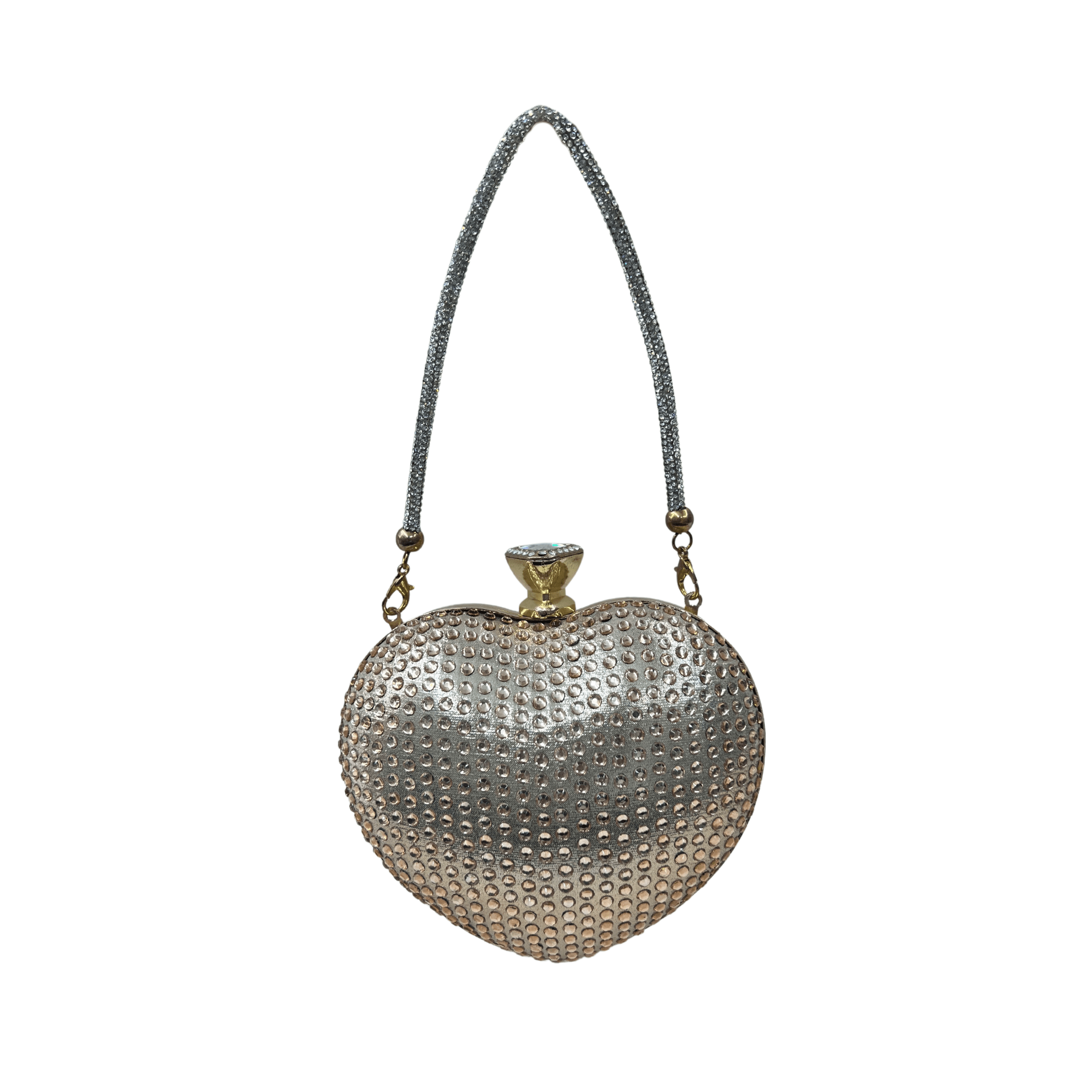 ارتقِ بأناقتك مع حقيبة كلاتش الكريستال على شكل قلب - إكسسوار رومانسي وساحر يُضفي لمسة من الحب على كل إطلالة. تصميم القلب الكريستالي يتألق بأناقة، مما يجعله الرفيق المثالي للمناسبات الخاصة. احملي أغراضك الأساسية بسحرٍ حنون، وعززي أناقتك.