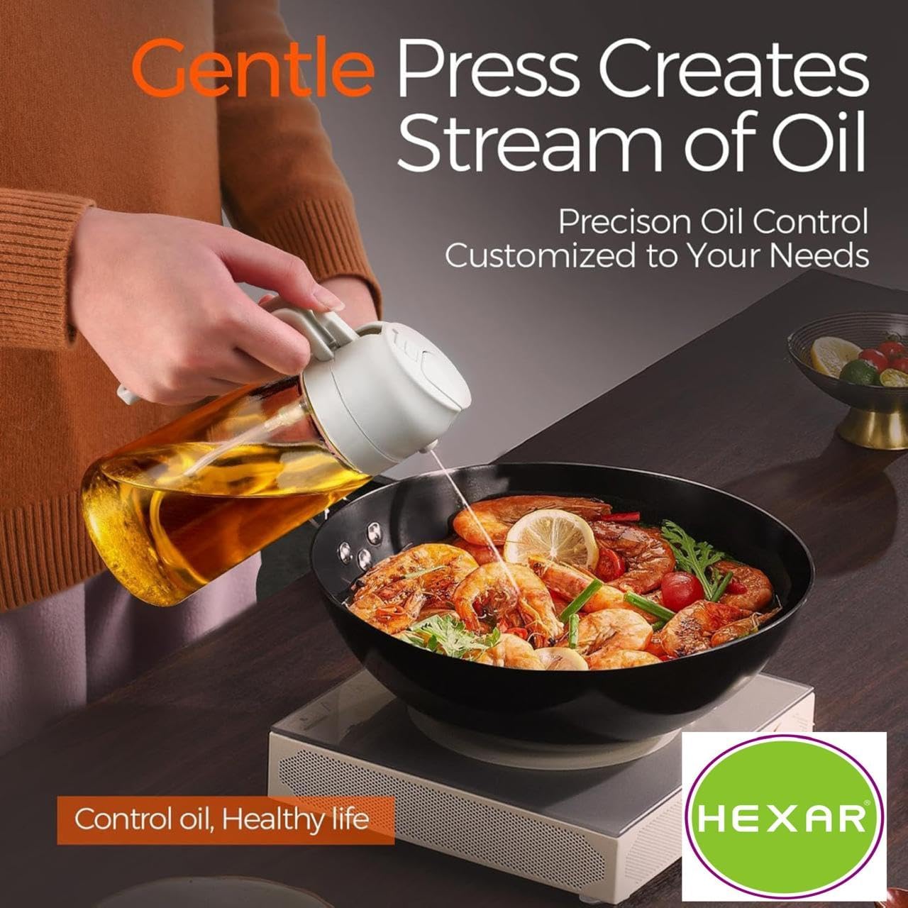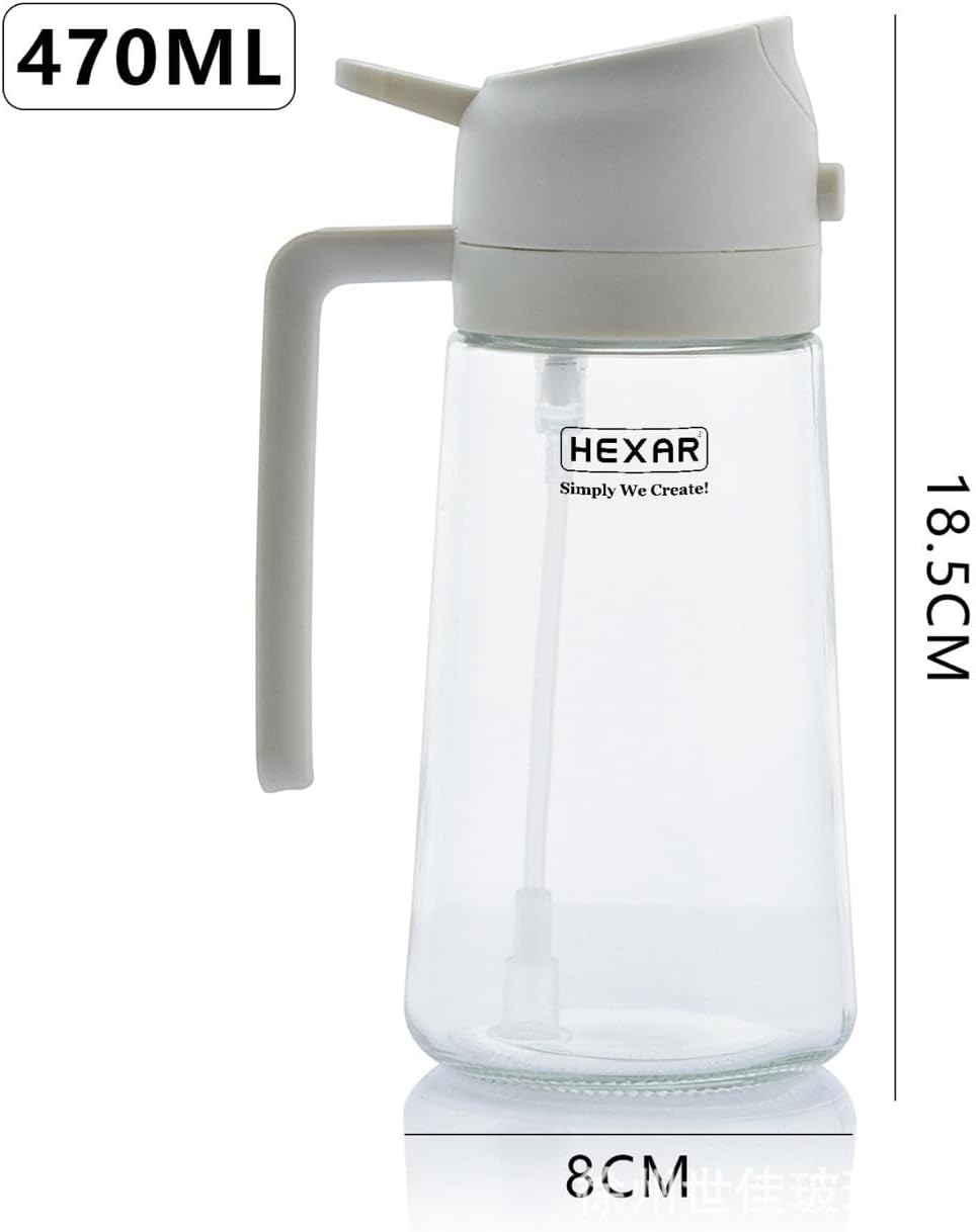 Hexar Olive Oil Dispenser Bottle for Kitchen,2 in 1 Oil Sprayer for Cooking, 16oz/470ml Glass Oil Spray Bottle with Pourer, Food-grade Oil Mister for Air Fryer, Salad, Frying, BBQ (Creamy White)