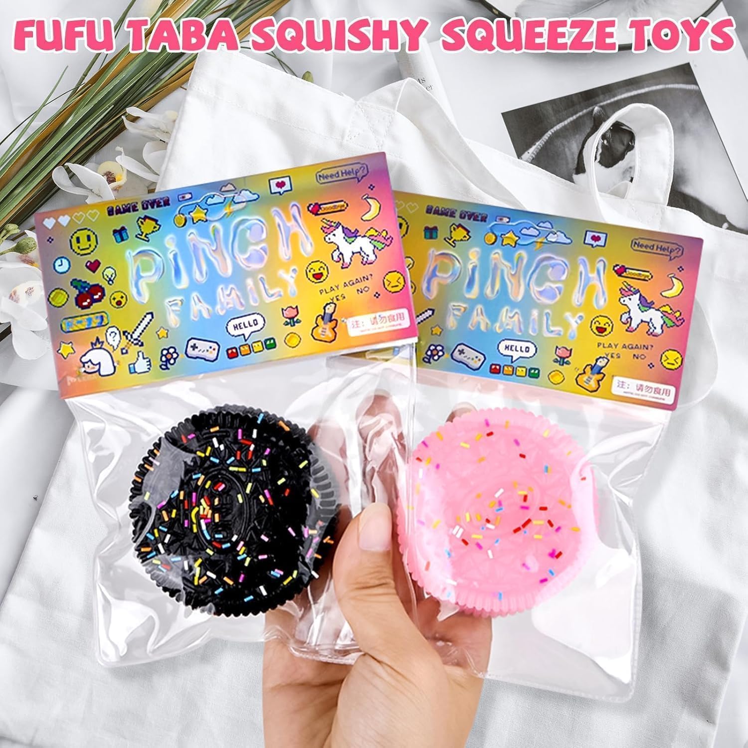 【تصميم بسكويت واقعي】 مستوحاة من سحر البسكويت اللطيف، تتميز هذه اللعبة الإسفنجية بتصميم بسكويت مرح وحيوي. مظهرها اللطيف يجعلها لعبة ممتعة للكبار والصغار، مثالية لعشاق الحلويات ومحبي الإكسسوارات المرحة، ترسم البسمة على وجوه الجميع وتوفر طريقة ممتعة لتخفيف التوتر.