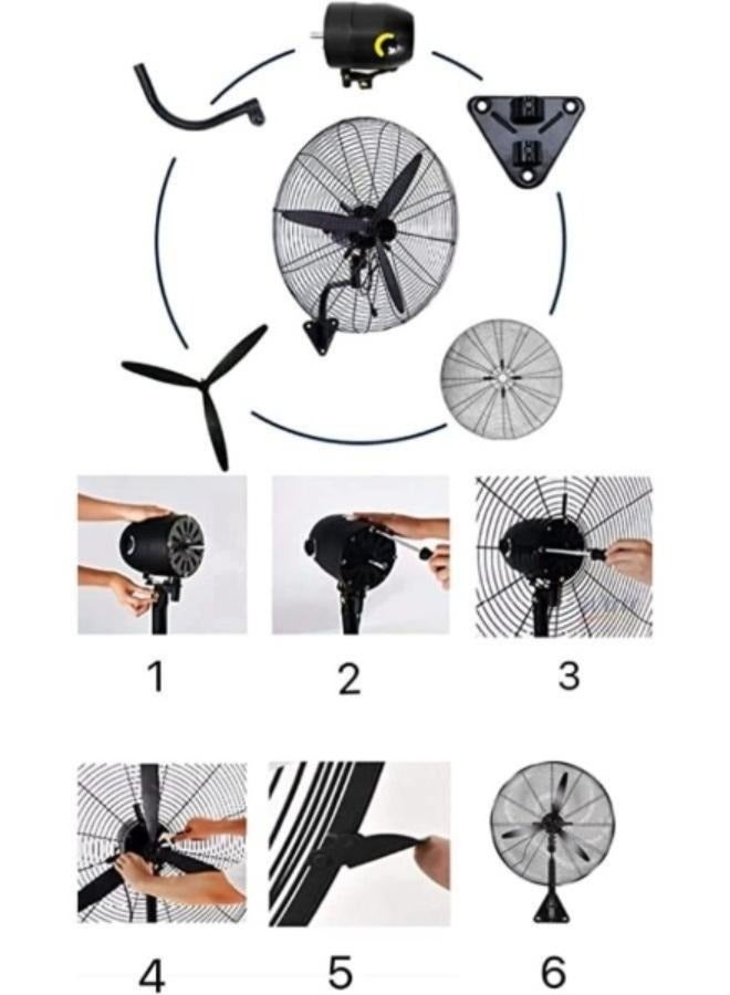Industrial High Power Wall-Mounted Fan 260W Mesh Cover Self-Locking Grill Fans