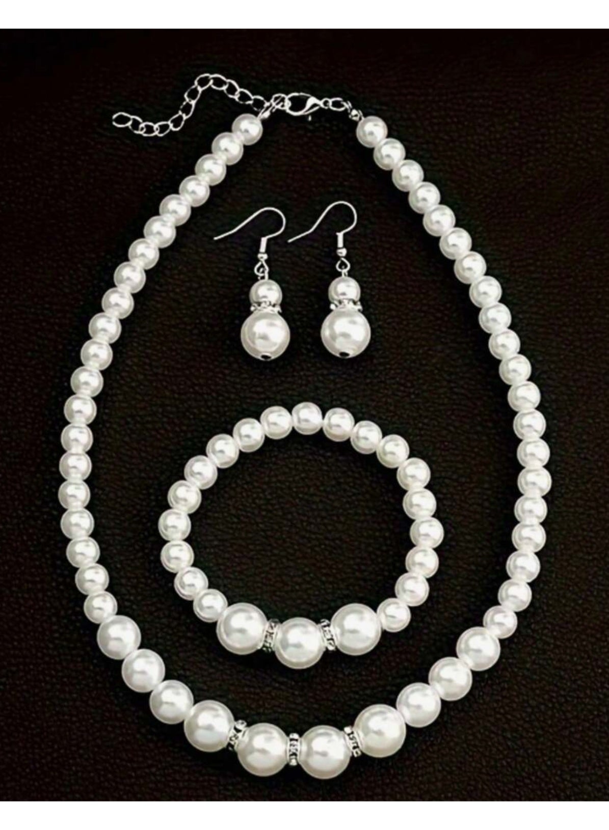 Jewelry Set of Pearl Including Bracelet, Earrings and Necklace Classic and Elegant Jewelry for Women