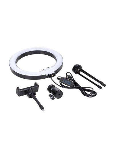 مصباح تصوير فيديو بحلقة LED مع حامل ثلاثي القوائم وإكسسوار أبيض/أسود