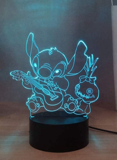ضوء ليلي ثلاثي الأبعاد من Lilo & Stitch، غرز ودمية عزف جيتار LED ضوء ليلي لغرفة النوم، مصباح مكتبي USB يعمل باللمس وجهاز التحكم عن بعد