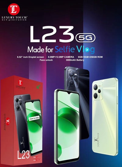 اللمسة الفاخرة الجيل الجديد L23 (5G) متعدد الألوان مصنوع من أجل Selfie Vlog 6.52 بوصة شاشة قطرات فتح الوجه 8.0 ميجابكسل + 12.0 ميجابكسل بطارية 3000 مللي أمبير 6 جيجابايت رام + 256 جيجابايت روم