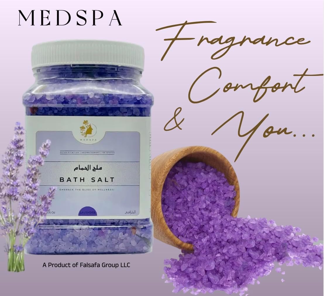 MEDSPA Lavender Bath Salt for Body & Foot Spa, Calming, Relaxing, Aromatherapy, Pure and Natural, Sea Salt, Infused with Rose Petals and Lavender Essential Oil 3kg 105oz