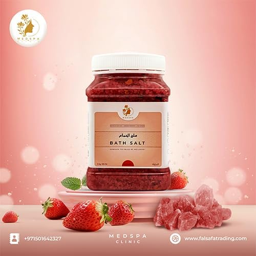 MEDSPA Premium Aromatic Strawberry Bath Salt Infused with Rose Petals for Skin Nourishment, Relaxing, Foot Massage, Pain Relief, and Aromatherapy 3kg 105oz