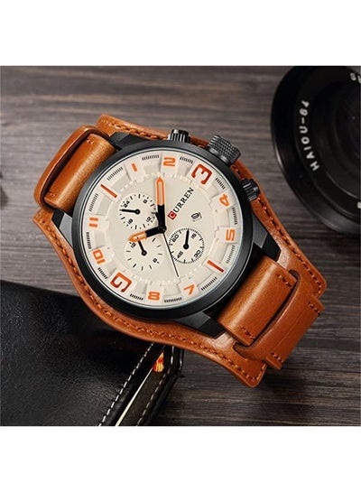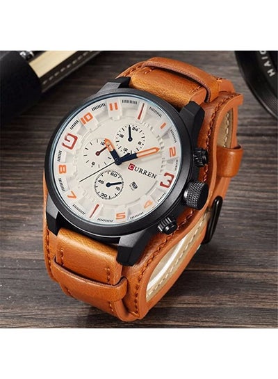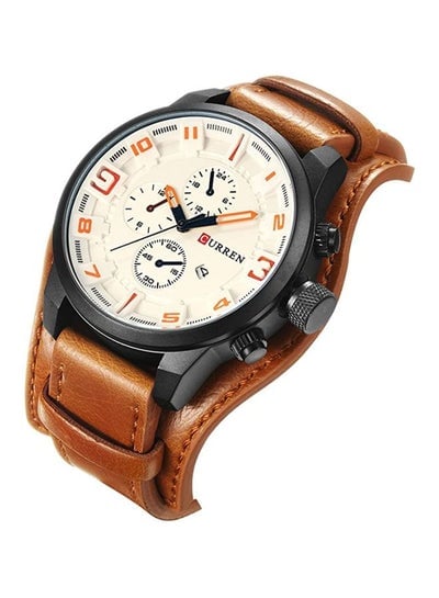 ساعة كرونوغراف مقاومة للماء للرجال 8225 - 48 ملم - بني