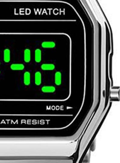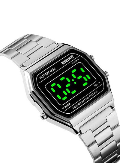ساعة يد رقمية فاخرة من الفولاذ المقاوم للصدأ مقاومة للماء بإضاءة LED 1646 للرجال