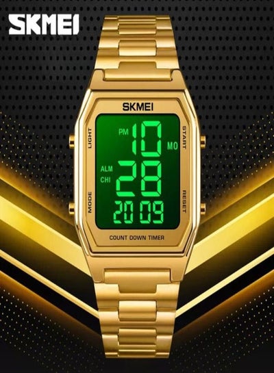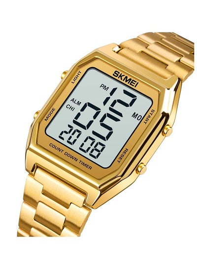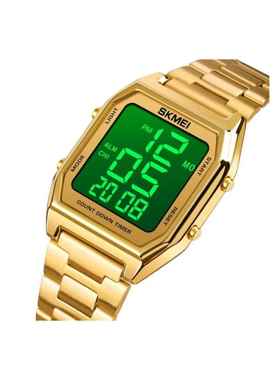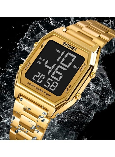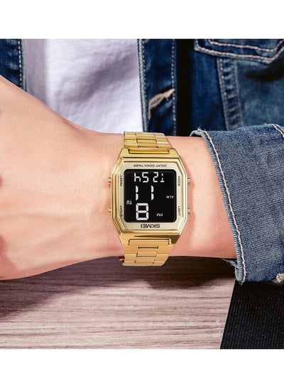 ساعة يد رجالية رقمية 1735 LED بتوقيت مزدوج طراز ريترو للرجال - ذهبية