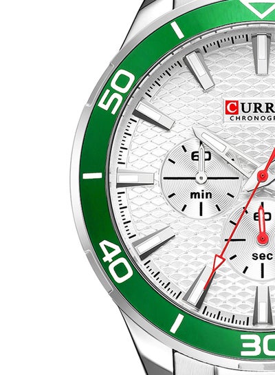 ساعة كرونوغراف للرجال مقاومة للماء وبسوار ستانلس ستيل وكوارتز كاجوال 8309 - 48 ملم - فضي