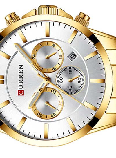 ساعة كرونوغراف للرجال مقاومة للماء وبسوار ستانلس ستيل وكوارتز كاجوال 8358 - 47 ملم - ذهبي