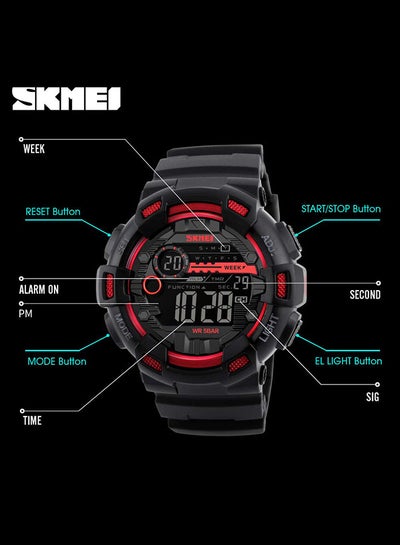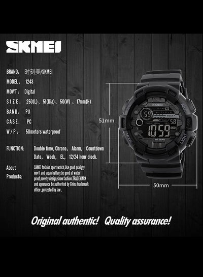 العد التنازلي: الحد الأقصى لوقت العد التنازلي هو 23 ساعة، 59 دقيقة، 59 ثانية II كرونوغراف: كرونوغراف 1/100 ثانية مع وظائف مقسمة II توقيت مزدوج: توقيت مزدوج يدعم منطقتين زمنيتين مختلفتين. حركة كوارتز يابانية أصلية: توفر الحفاظ على الوقت بدقة ودقة، قطر القرص: 50 ملم؛ سمك الهيكل: 17 ملم؛ عرض السوار: 22 ملم؛ طول سوار المعصم: 250 مم، تاريخ تلقائي، تقويم دائم، غواص، راترابانت، مرحلة القمر، منبه، كرونوغراف، مقاوم للماء، تقويم كامل، منطقة زمنية متعددة، مضيئة، شاشة LED، مقاومة للصدمات، ضوء خلفي، مقاومة للماء حتى عمق 50 مترًا (يرجى عدم الاتصال) لا تضغط على أي مفاتيح تحت الماء)،