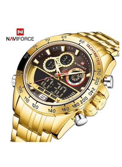 ساعة يد ستانلس ستيل أنالوج ورقمية NF9188 G/G/G للرجال - 46 ملم - ذهبي