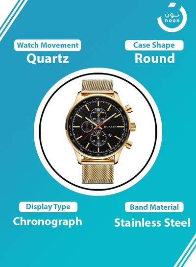 حركة ساعة كوارتز تضمن الحفاظ على الوقت بدقة، قرص أسود اللون يعزز المظهر العام للساعة، مصمم بحزام ذهبي اللون، هذه الساعة تناسب معصمك جيدًا، هيكل متين 44 مم يضمن المتانة، هذه الساعة المصممة بشكل مثالي ستكمل ساعتك الرسمية وشبه الرسمية - المظهر الرسمي، هذه الساعة مزودة بحركة مصنوعة من مادة نافذة صلبة مقاومة للخدش والغبار، مما يجعل الساعات مصممة بدقة شديدة مع ميزات مقاومة للماء لتوفير أقصى درجات الأمان للساعة، وتساعد على تنظيم حركة الساعة و تأتي مع طبقة واقية وإضافة رائعة لرف الملحقات الخاص بك، ويوفر المسمار الخلفي المصنوع من الفولاذ المقاوم للصدأ مقاومة أفضل للماء للساعة عند ارتداء الساعة أثناء الاستحمام أو السباحة أو الغوص،