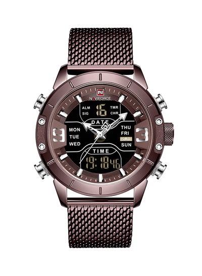 ساعة يد من الستانلس ستيل بعقارب/رقمية مقاومة للماء NF9153 للرجال