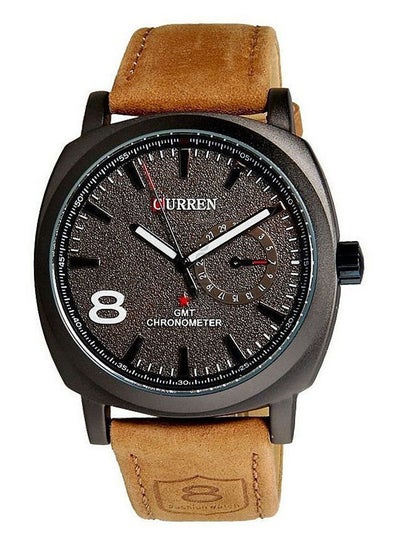 ساعة يد رجالية من الجلد مقاومة للماء موديل 8139 - 40 ملم - بني