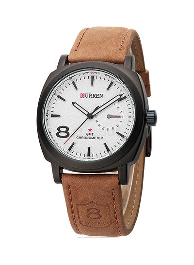 ساعة يد رجالية مقاومة للماء من الجلد 8139 - 41 ملم - بني
