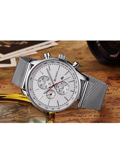 ساعة يد رجالية مقاومة للماء من الستانلس ستيل بعقارب 8227 - 47 ملم - فضي