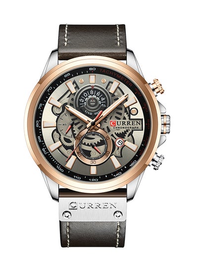 ساعة يد رجالية مقاومة للماء بسوار جلد أصلي كرونوغراف كوارتز 8380 - 48 ملم - رمادي داكن