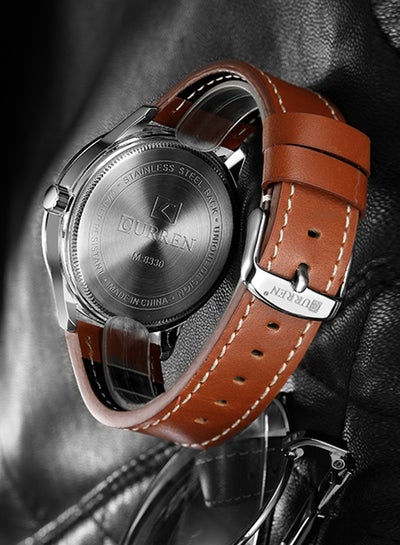 ساعة رجالية مقاومة للماء من الجلد الأصلي مع ساعة كالاندر كاجوال كوارتز 8330 - 48 ملم - برتقالي