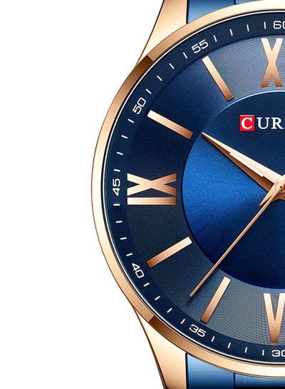 ساعة رجالية مقاومة للماء بسوار ستانلس ستيل وكوارتز كاجوال 8383 - 44 ملم - أزرق