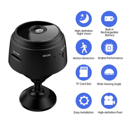 كاميرا فيديو ميني واي فاي 1080 بيكسل لاسلكية عالية الوضوح عن بعد باللون الأسود