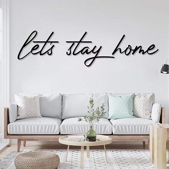 لوحة فنية جدارية خشبية من ميرفا مع قاعدة لاصقة ذاتية اللصق، ديكور منزلي، لوحة فنية خشبية بمظهر معدني، لغرفة المعيشة وغرفة النوم، ترحيب بالعام الجديد (أسود، 12 بوصة × 12 بوصة، دعونا نبقى في المنزل)