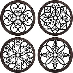 لوحة فنية جدارية خشبية من ميرفا مع قاعدة لاصقة ذاتية اللصق، ديكور منزلي، لوحة فنية خشبية بمظهر معدني، مناسبة لغرفة المعيشة وغرفة النوم، باب ترحيبي بمناسبة العام الجديد (أسود، 12 بوصة × 12 بوصة، عجلات عربة - عبوة من 4 قطع)