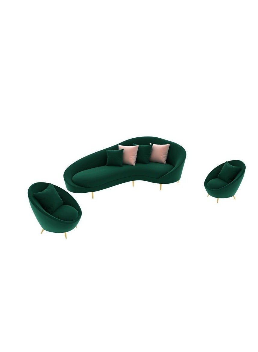 Modern Curved Shape Velvet Design Luxury Furniture Living Room Wedding Sofa Set 5 Seater Green 230X97X85