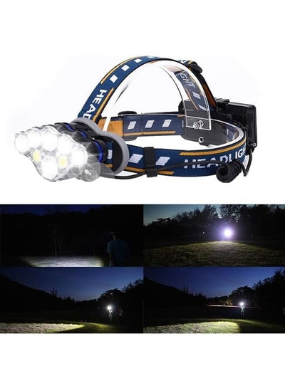 مصباح أمامي متعدد الوظائف بقوة 18000 لومن، رؤوس شعلة مقاومة للماء مع ضوء أحمر للتخييم والصيد وإصلاح السيارات، مع بطاريتين وكابل USB