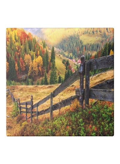 لوحة قماشية بطابع الطبيعة مع إطار أخضر/أصفر/رمادي 50x50سنتيمتر